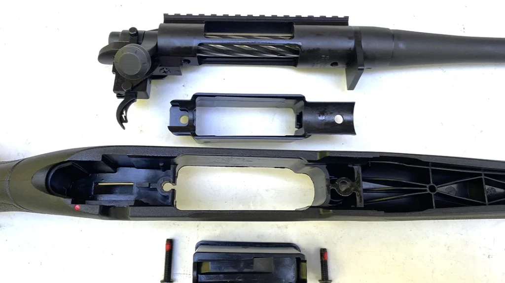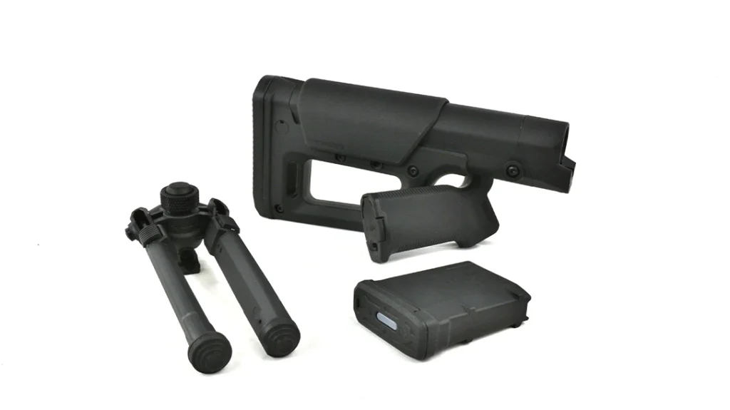 I used Magpul components to achieve this goal. Starting at the rear, I replaced the factory stock with the Magpul PRS Lite. This stock offers a range of adjustments, including comb height, length of pull, butt pad height and cant to allow for a highly personalized fit. PRS Lite stocks can easily be adjusted with simple Allen wrenches. Likewise, the PRS Lite’s enhanced design contributes to stable shooting whether from a bench, prone position or tripod. Its lightweight polymer construction keeps the rifle well-balanced, while the wider rubber butt-pad helps buffer out recoil.