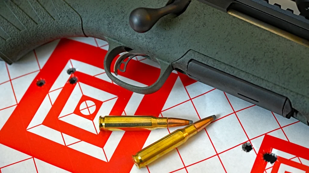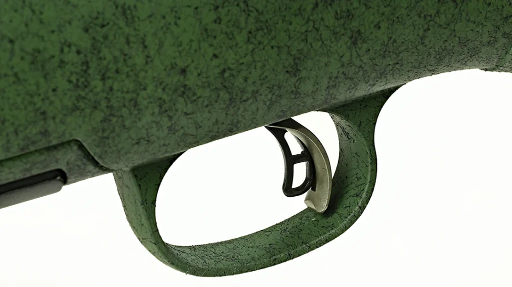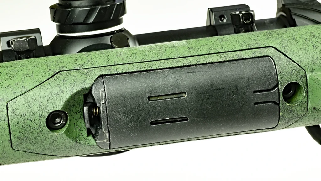 My 308 Win test rifle came with a flush-fitting, detachable four-round polymer magazine. That’strue of all rifles except those in 350 Legend and 450 Bushmaster. Magazines for guns in those chamberings hold five and three rounds, respectively, and protrude from the bottom of the action. Some early American rifles used AI- or AR-style magazine wells which placed the magazine release latch in the way of getting at the action screw. That meant you had to remove the latch to remove the action from the stock, and I found that to be a royal pain. I don’t know if that issue has been addressed with guns in these two chamberings, but it’s worth looking before you leap if you plan on adjusting the trigger.