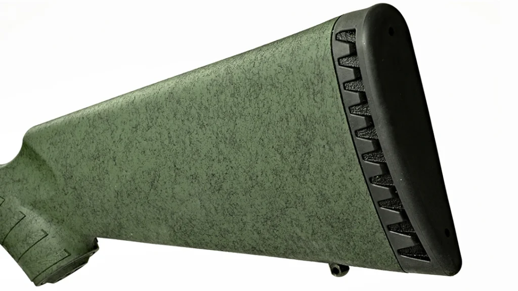 Aesthetically, the Glenfield Model A is more pleasing to my eye than original Americans with their plain black stocks or American Predators with their lime green stocks. The Glenfield has a darker, mossy green stock with a black spatter finish that provides a good grip without being too sharp or abrasive. The forend and pistol grip have molded-in contours for the fingers in the right places to enhance grip in wet conditions.