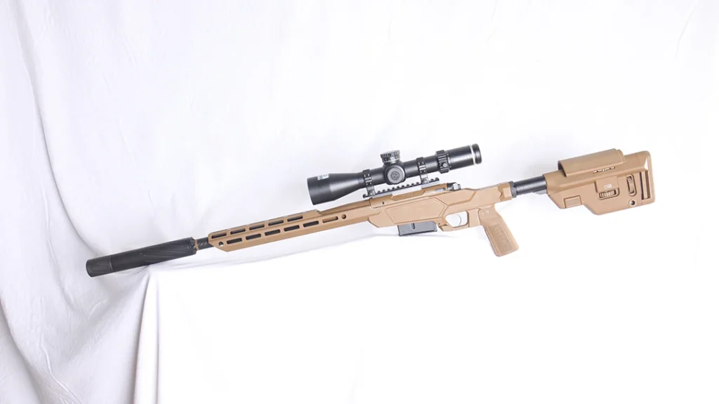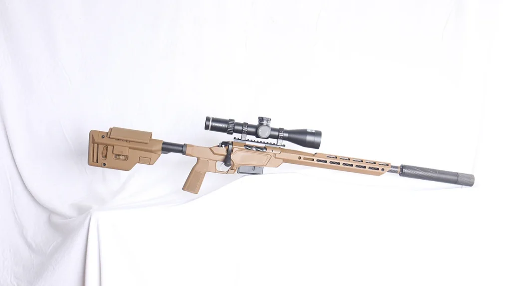 A key highlight is the partnership with industry leader MDT, as the Heatseekercomes equipped with an MDT Chassis system featuring a precision-machined aluminum V-block bedding surface. The chassis incorporates an ergonomic pistol grip, an adjustable cheek riser, and M-LOK attachment points along the forend for accessories. The stock’s finish combines a durable hard-coat anodized surface with a modern tactical aesthetic, ensuring both resilience in harsh conditions and a streamlined, professional look.