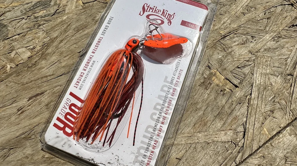 My personal favorite is the Thunder Cricket from Strike King baits. This bladed jig is a good blend of the two mentioned previously. It has a solid vibration pattern that makes a lot of noise but still keeps it tight. This jig is perfect for a swimbait style trailer attached and swimming in open water or tight vegetation. In conclusion, the jackhammer is my go-to with a craw trailer in shallow water or shorelines. The SlobberKnocker is my choice for open water swimming or in vegetation, and the thunder cricket is my common “do-all” option that I can use in almost every situation.