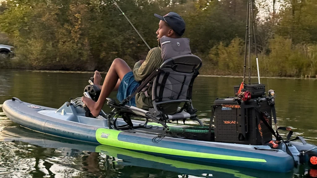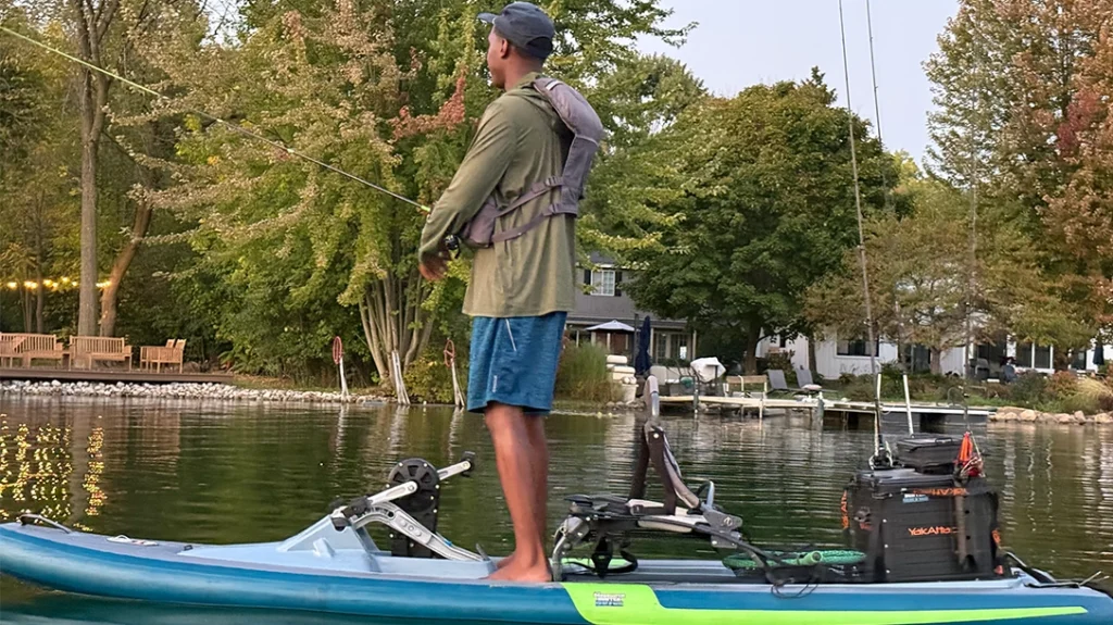 This kayak is fast and stable. To be honest, I was very surprised by how stable it really is. From standing to walking around this platform was very easy to feel comfortable on. It does feel a bit strange to be so high up on the water and have no walls around you, but you quickly forget that with just a few swift moves on the water. It’s fast and agile to say the least. Fishing from this kayak was very simple too. There is room for a crate in the back or cooler hold gear and mounting options for accessories.