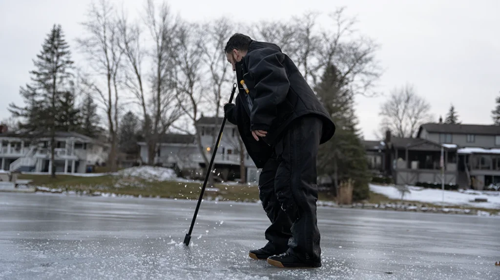 Like any new hobby or sport, you want to do your research before buying every piece of gear that may not be right for you. Having ice on the lakes means it’s cold, so first step is getting cold weather gear to ensure your safety from the temperatures and possible wetness. Make sure you have solid waterproof boots since the top layer on the ice is usually wet with melted snow. Warm socks and boots that are dry are very important. I use the Frabill Ice Hunter suit since the bibs and jackets are warm, waterproof and provide plenty of safety features such as integrated ice spikes in case of falling in and needing to climb out of the ice. Once you are warm, waterproof and safe with your clothing, next step is the safety gear for the ice itself.