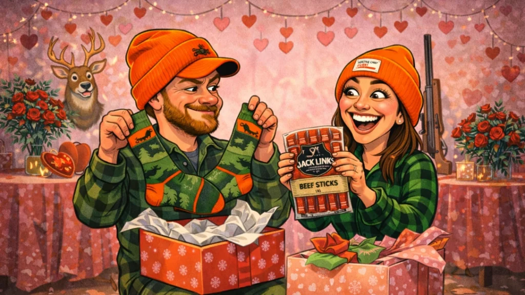 In the outdoors, love isn’t declared in shiny trinkets. It’s endured in shared misery, because romance hits different when frostbite is a possibility. Let’s explore the love languages of hunters, anglers, and other liars.