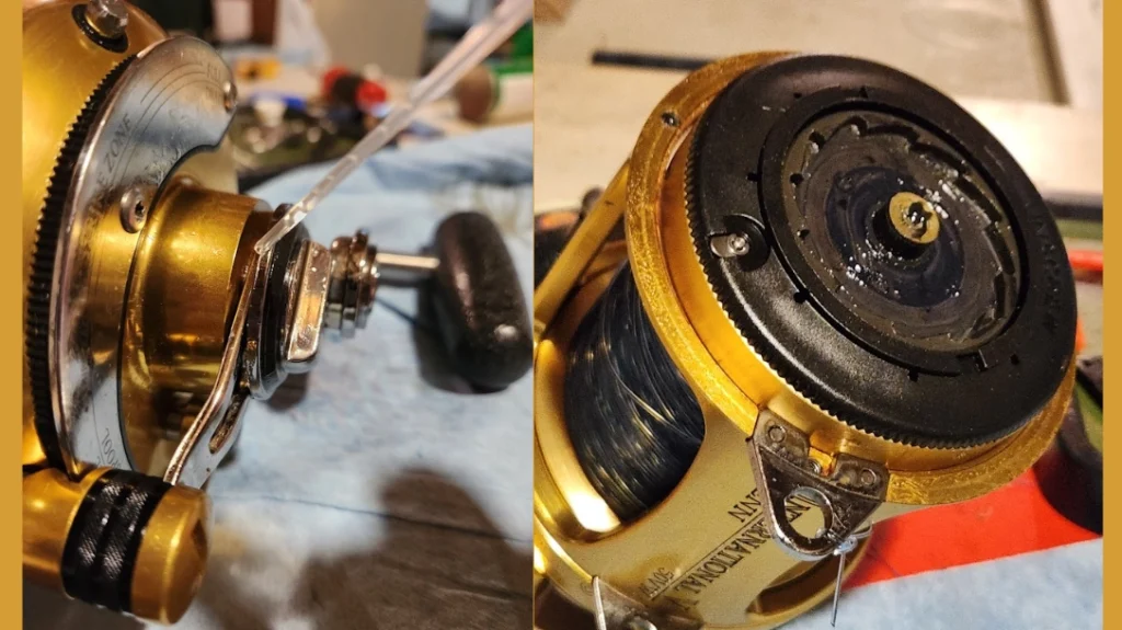 First take the spool off spinning reels to keep the braided or mono line away from any lubricants. Apply lubricants under the spool on any springs and drag devices visible to the naked eye. On the top of the spool cap, re-apply a new coat of heavier Penn lube to keep the seals well-greased. Do not take the drag washers and spacers out if the reel is in good working condition. It is not necessary. If the drag is jumpy then that would signal a deeper dive into the internal workings of the drag. If all is in good working order, leave it alone.