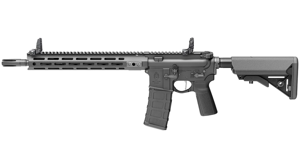 Designed with durability and performance in mind. The Springfield Armory V2 Saint Victor comes chambered in 5.56mm with a pinned and welded 14” barrel. This rifle features a 3910 enhanced BCG with a flat faced, nickel boron coated trigger for a smooth trigger pull. Another cool feature are the 7 integrated QD sockets and spring loaded flip up BUIS. Springfield Armory states “The Victor is built to run right out of the box.”