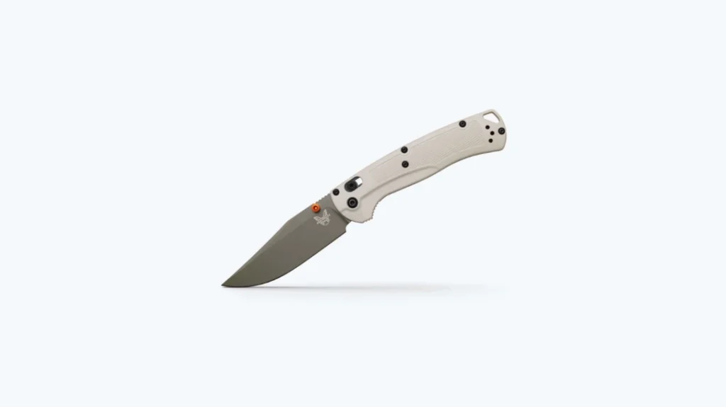 The TAGGEDOUT lineup offers a knife made with hunters in mind. It is durable, lightweight, and easy to use, plus made with the trusted Benchmade reliability that has made this brand a staple for outdoorsmen. The line features a new camo-inspired colorway, including an Elmax forest green Cerakote clip-point blade, tan Grivory handle scales, black oxide hardware, and finished with orange anodized barrel spacers and thumb stud. It is a work knife that looks good both in the field and in regular life.