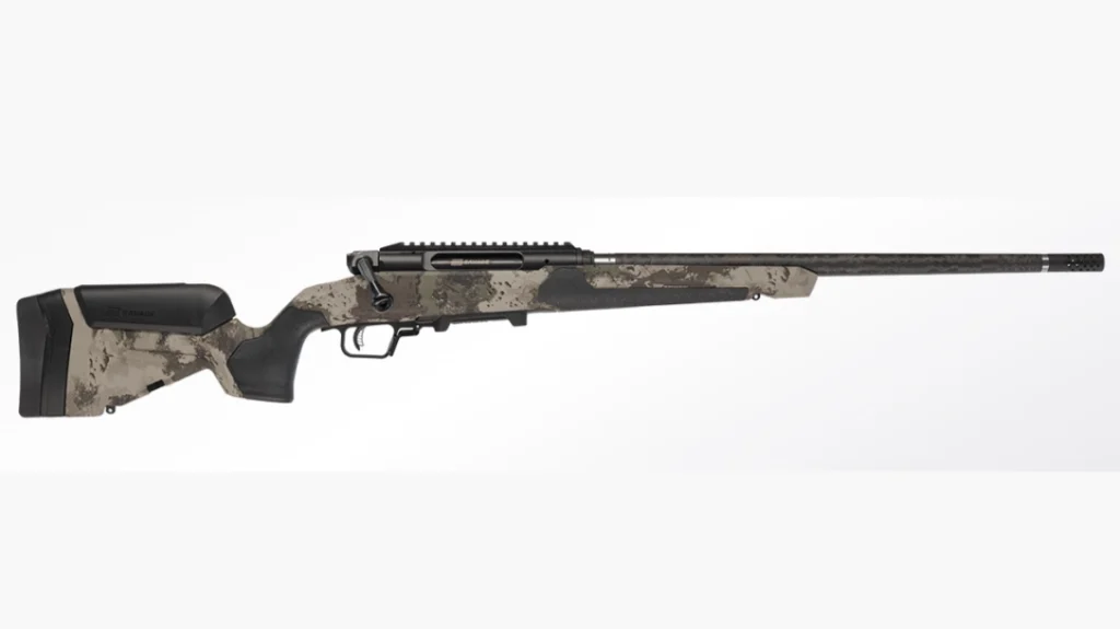 The straight-pull Impulse Ultralite Pro from Savage Arms is built to reduce weight without sacrificing durability. Aimed at hunters who want to cover serious ground, the Ultralite Pro is a straight-pull hunting rifle that’s built to keep ounces off your shoulder. The Impulse Ultralite Pro is loaded with features, including the ambidexterous bolt handle, interchangeale grip modules, exclusive LimbSaver recoil pad, blackout cerakoted barreled action, threaded barrel with omniport muzzlebrake, and comes in two finishes: Savage Woodland or Savage Western Camo Stock.