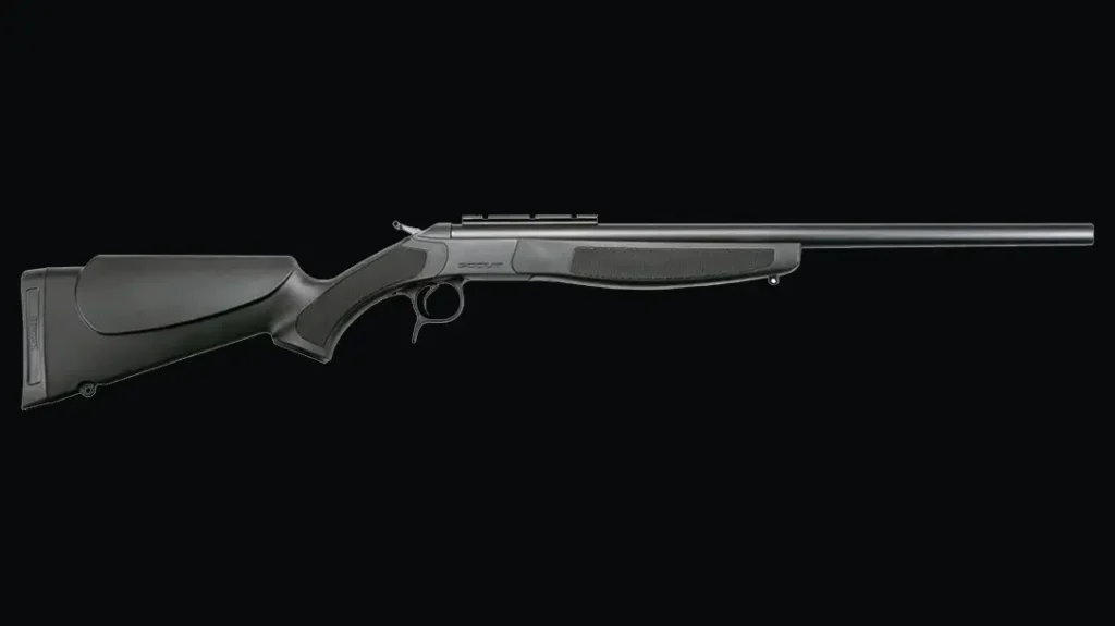The Scout is also available in a .410 shotgun. For those hunters wanting to try their hand at turkey hunting with a .410 and the new TSS shot, the Scout offers a scope base mounted to the barrel, and the Realtree Timber model features a JEBS X-Full turkey choke.