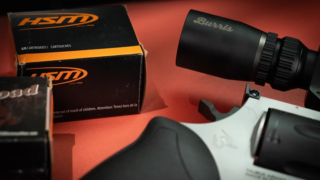 Pistol hunting is easier when you can bring a meaningful optic to bear. I fitted this Raging Hunter with a Burris 3–12×32 pistol scope. This scope has a parallax adjustment up front and adjustable eye relief, and it carries Burris’s Ballistic Plex reticle which is clean and practical for quick holds in the field. The 1-inch tube lets in ample light for a pistol scope and the eye relief is forgiving when working from awkward positions.