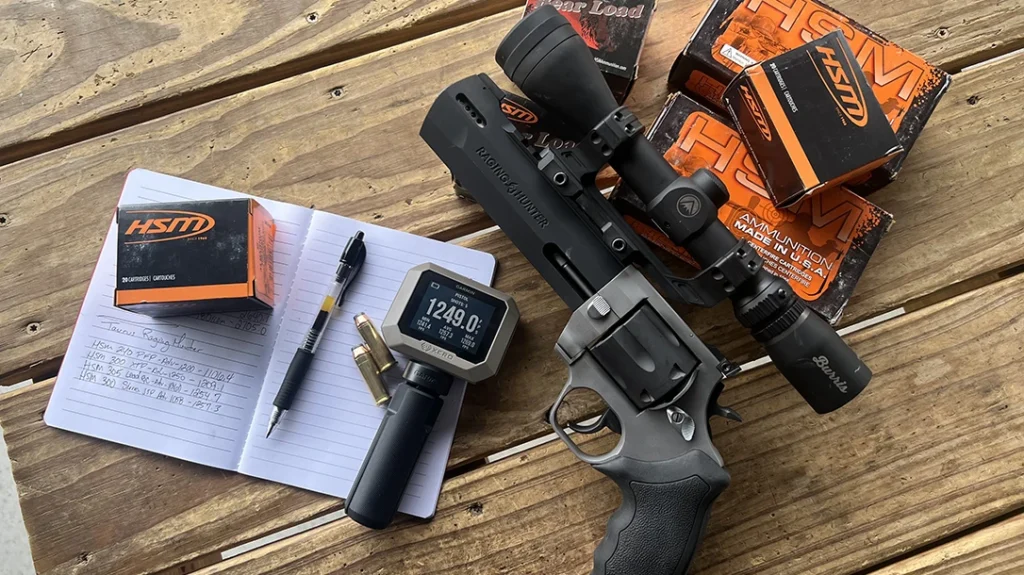 I ran a selection of HSM loads through this Raging Hunter and used a Garmin Xero Chronograph to collect numbers. These are the averages I recorded: