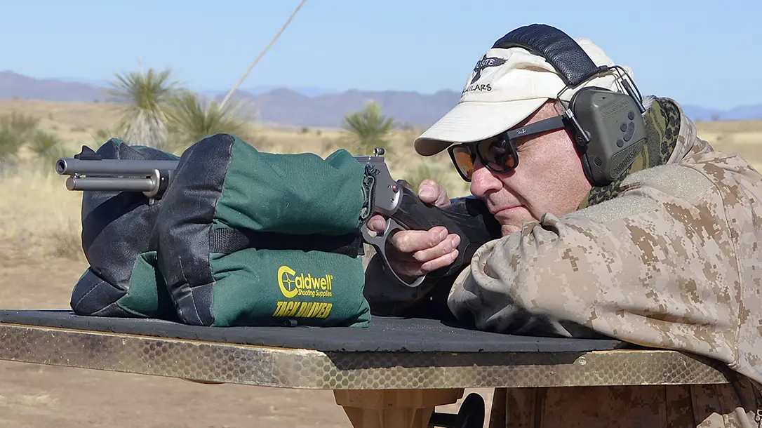 My target is what the instructors at Gunsite call the Gumdrop, and its steel profile approximates the heart and lung area of a man. It was as if I couldn’t miss! At 35-yards I fired as quickly as I could cycle the smooth lever gun and was rewarded with the metallic ping of a hit for each shot. Later on, we walked Gunsite’s Military Crest and engaged steel targets from 200-300-yards, and when I did my part I connected at those ranges. When we secured for the day, I made arrangements with Trevino to get a T&E sample of the Trapper to perform more in-depth accuracy testing.