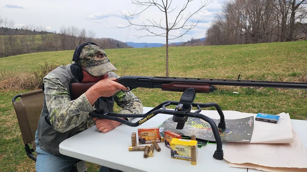Speaking of that sight in topic, this is how you should think of patterning your shotgun. Go to the range and shoot from a bench just as you would sight in a rifle. Remember usually in spring turkey hunting we are shooting from a sitting position at a stationary target, not standing and swinging on a moving target as in most scattergun shooting.