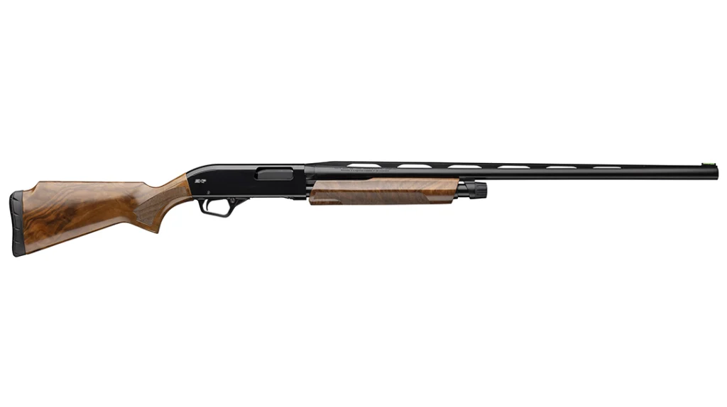 The SXP High Grade is actually a new product for 2025. This shotgun features a gloss finished aluminum alloy receiver and can be had with blued steel 30 or 32-inch barrels. Internally, its both chrome-lined and back-bored. The muzzle also makes use of Invector-style chockes. The 5/16-inch trap rib is a bit wider and higher than a standard field SXP to allow the shooter to get on the bird quicker. The TRUGLO fiber optic sight and white mid beads also help. Like many target shotguns, the Winchester SXP High Grade features a 70/30 point of impact. This means 70% of the shot will pattern above the bead. This type of arrangement works excellently with rising targets, which are often encountered in trap-shooting.