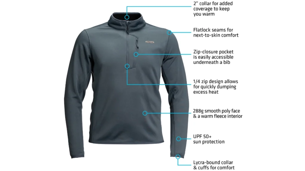- 1/4 zip design allows for quickly dumping excess heat